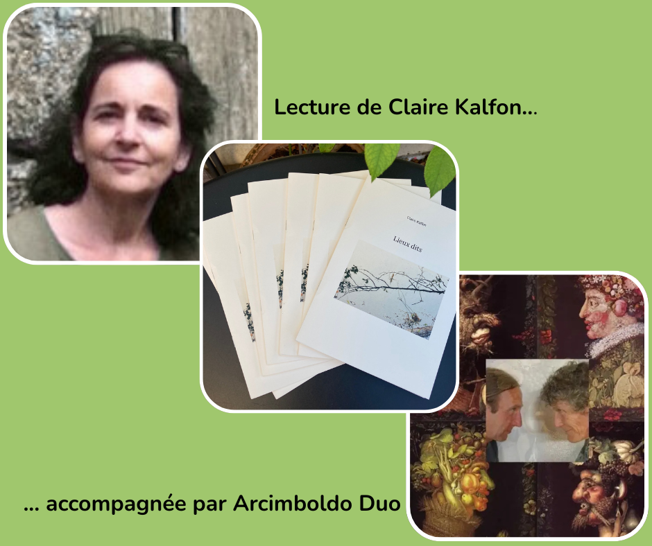 Claire Kalfon a écrit un petit recueil de poèmes (imprimé mais pas édité), intitulé « Lieux dits ». Le thème c’est le paysage, les lieux, les petites traversées entre là-bas et ici, le passé et le présent… Elle nous lira ses textes et sera accompagnée des musiques voyageuses d’Arcimboldo Duo. Tout ça devrait bien s’accorder…