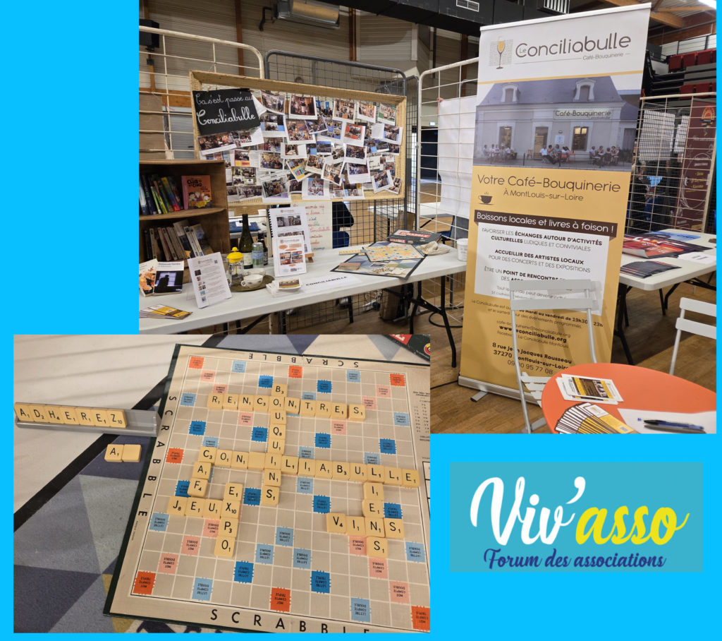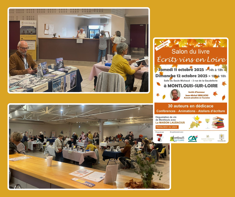 Les 11 et 12 octobre 2025, le Conciliabulle était présent pour le premier Salon du Livre de Montlouis : « Ecrits vins en Loire ». Nous avons nous aussi rencontré les auteurs présents et nous avons vendu nos boissons habituelles.