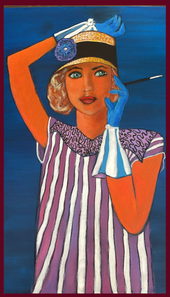 Mon travail s’articule autour du portrait féminin, inspiré par l’élégance des femmes des Années Folles. J’associe ces figures féminines aux fleurs comme un prolongement de leurs émotions, de leur personnalité et de leur force intérieure. Les visages dialoguent avec les formes florales, créant un univers doux, vibrant et poétique.