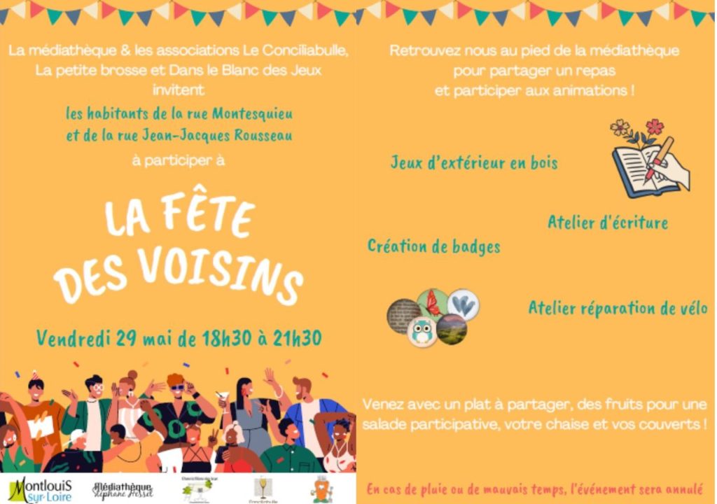 Le Conciliabulle s’associe à la Médiathèque Stéphane Hessel et aux associations La P’tite Brosse et Dans le Blanc des Jeux pour proposer une Fête des Voisins aux habitants des rues Jean-Jacques Rousseau et Montesquieu.